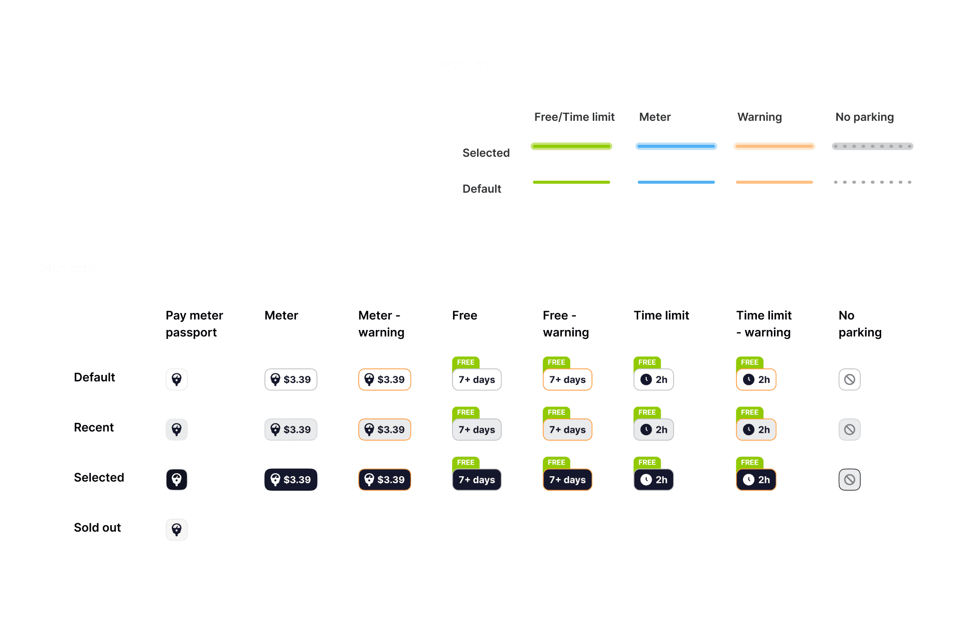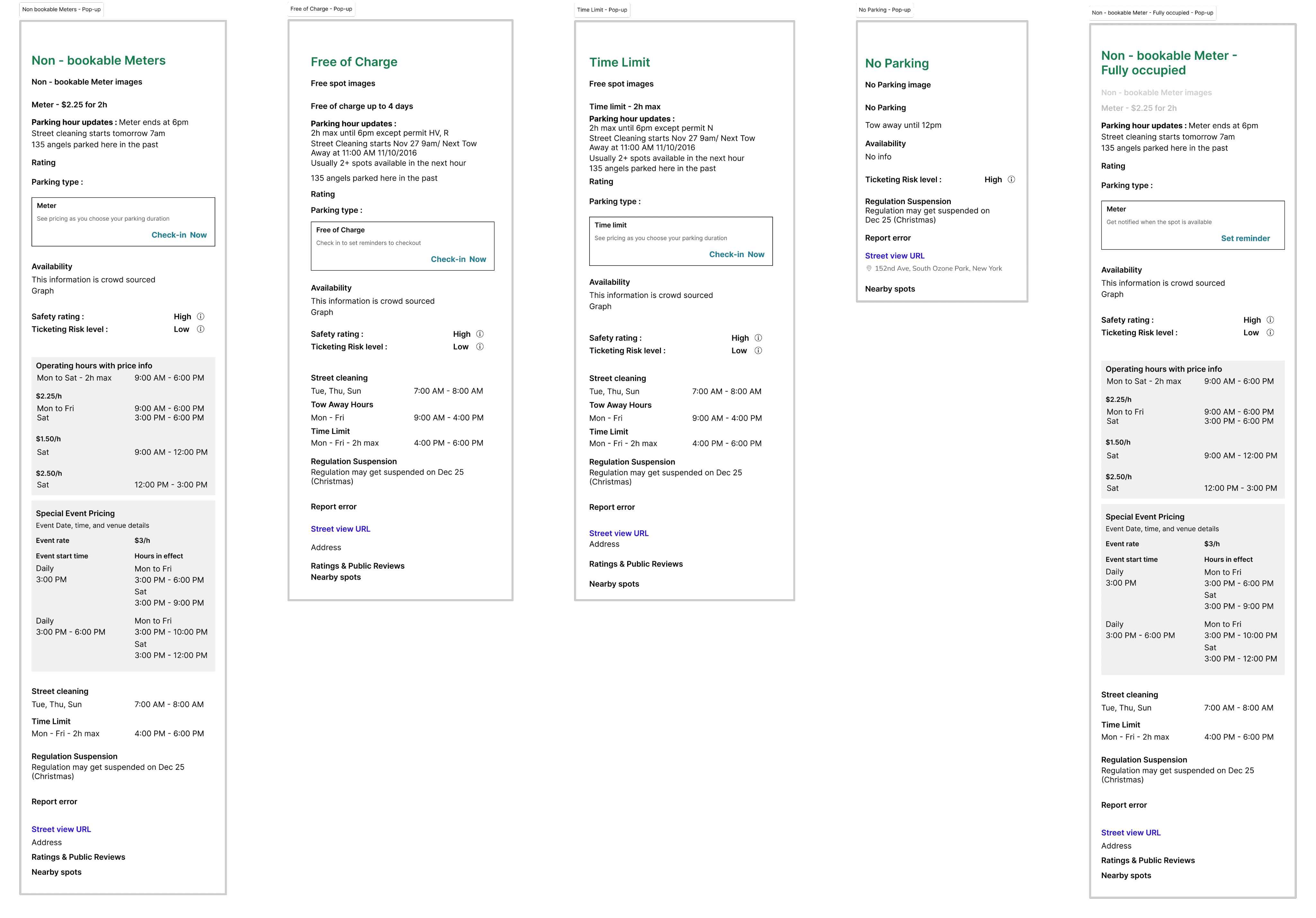 Before touching the map, I focused on the details page, where rules, risks, and edge cases converge. I broke down every on-street scenario into a clear, scannable hierarchy covering availability, restrictions, safety, pricing, and alerts.