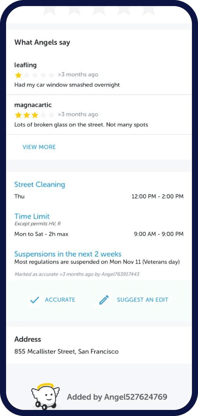 From a quick survey, conducted by the PM, with ~20 Way users to understand real on-street parking challenges, I derived the
