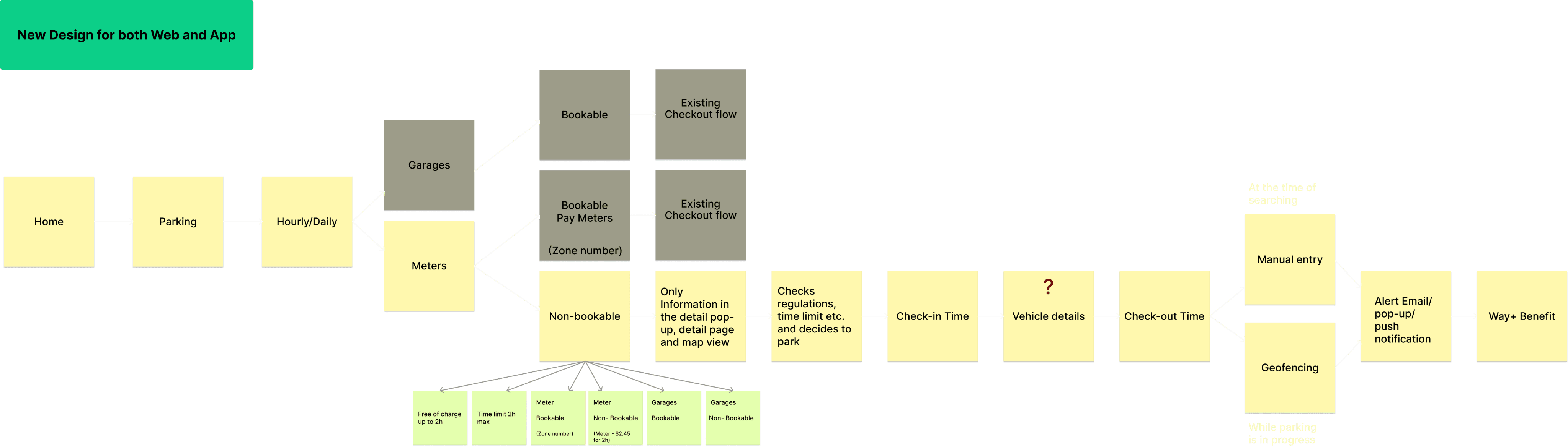 To make sure this structure would scale beyond a single screen, I also mapped the end-to-end user flow, from discovery to parking, reminders, and edge cases. This helped me validate how each rule state travels across cards, pins, notifications, and system behaviours.