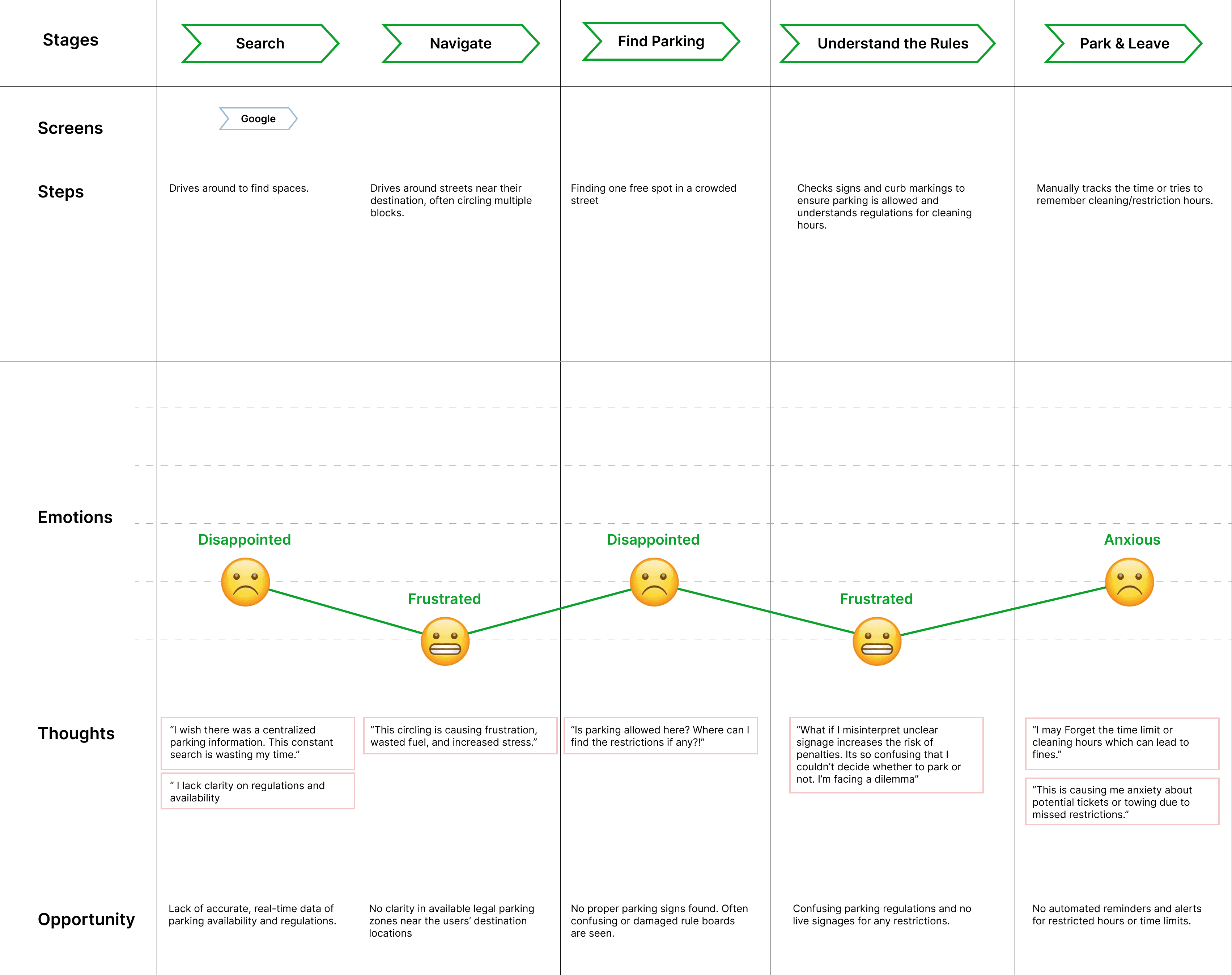 I mapped the end-to-end journey of a driver finding on-street parking to identify exact breakdown moments.